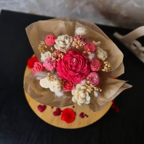 Découvrez notre magnifique bouquet de bougies en fleurs diverses. Offrez à vos âmes sœurs un cadeau unique et raffiné grâce à nos créations artisanales, conçues pour apporter de la chaleur et de l'amour.